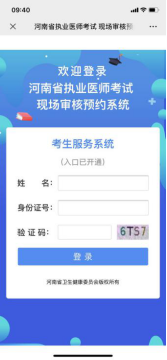 网上报名成功的西医类别考生,按照各县(市、区)具体审核时间,分县(市、区)进行现场审核网上预约,网上预约方式:关注微信公众号“河南预约挂号平台”点击“执业医考”选择“考生预约”,按照在网上预约时段进行现场审核和信息采集。