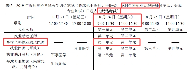 1.2019年医师资格考试实践技能考试时间为6月15日至21日,医学综合笔试考试时间为8月24日,采取纸笔考试。