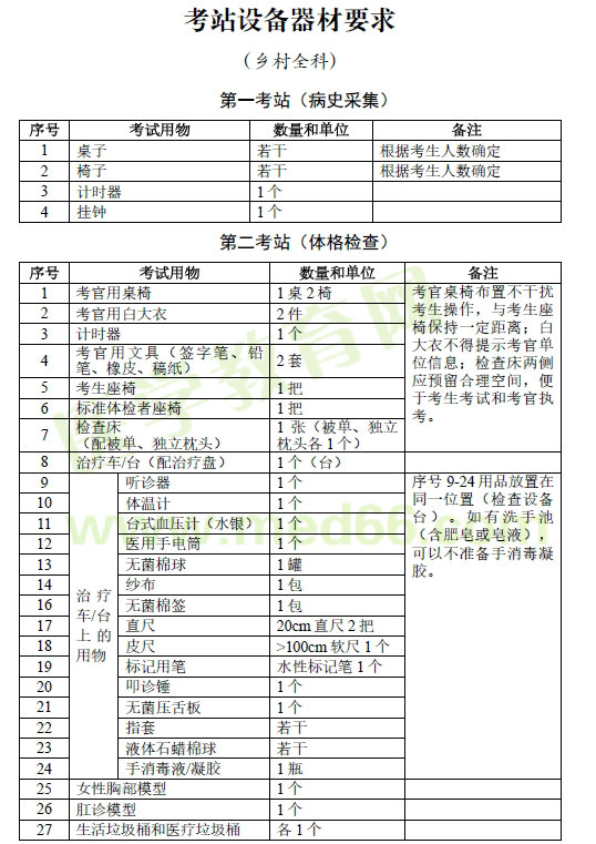 “2019年乡村全科助理医师实践技能各考站设备器材要求(附清单)”由医学教育网编辑整理搜集,更多考试信息敬请关注医学教育网