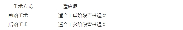 解析: ①颈椎病的手术入路见下表。②该患者表现为C5——6间盘突出,即单阶段脊柱退变,故首选前路手术。