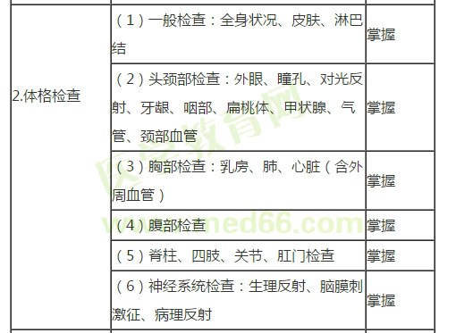 第二部分——体格检查。从头到脚,从五官到四肢,心、肝、脾、肺、肾、膀胱都在考试范围内。考场中通过抽签决定考查哪一部分,这就要求我们复习时多做练习,建议找自己的朋友,亲属来扮演模特儿,每一项检查步骤和手法都演练几遍。这其中最为重要、最核心的是:“步骤”;有的同学可能会问为什么是步骤最重要而不是手法呢?因为一个操作你能够完完整整的做下来,可以体现出你知道在面对问题的时候“你该做什么”,这要比束手无策强1万倍;技能考试最忌讳的就是“忘了下一步该做什么”,而站在考场上傻傻的看着考官。如果出现这样的冷场,你的考试也就提前结束了。至于手法问题,我想说每个人都有可能会被扣分,但只要你步骤做全了,就肯定不会产生大的扣分。