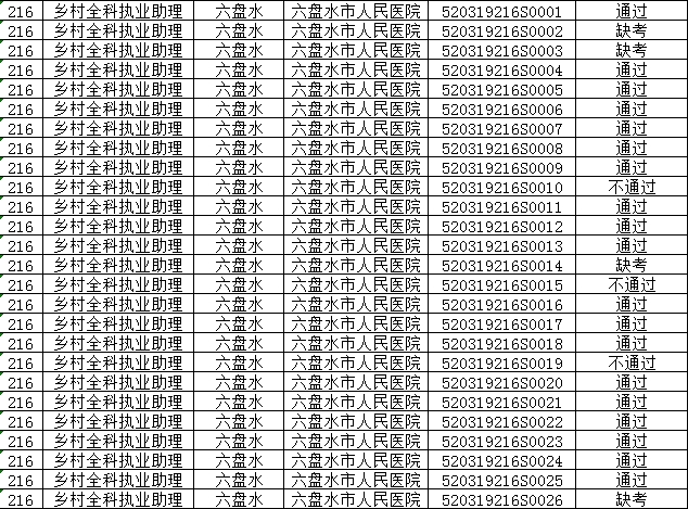 贵州六盘水2019年乡村全科助理医师实践技能成绩结果名单!