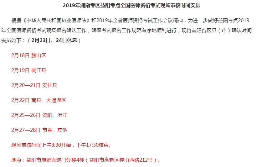 “湖南益阳市2019年乡村全科助理医师现场确认时间安排”由医学教育网编辑整理搜集,更多考试信息敬请关注医学教育网。
