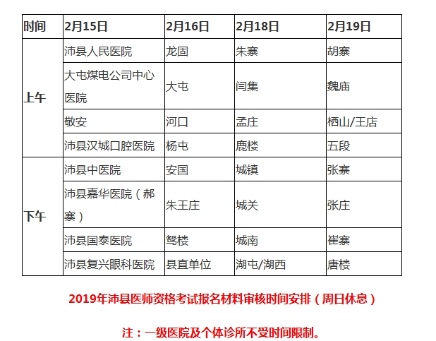 通知原文:江苏省徐州沛县2019年医师资格考试报名现场审核工作安排