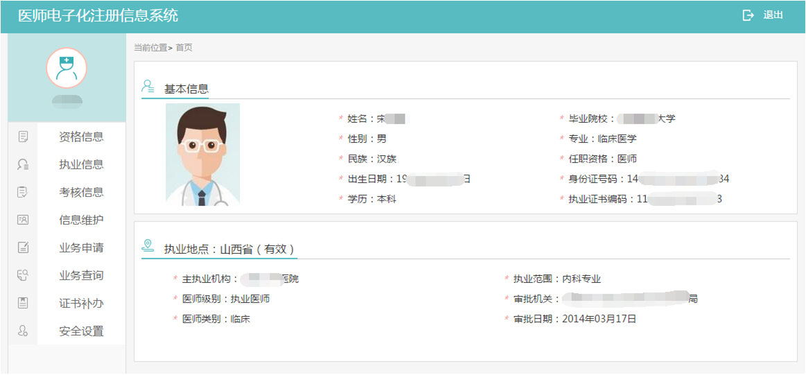 (2)查看医师本人的执业信息。