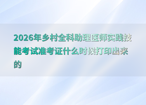 2026年乡村全科助理医师实践技能考试定于6月6日至17日举行,准考证打印时间因地区而异,通常在考前1-2周开放。