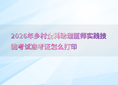 2026年乡村全科助理医师实践技能考试准考证打印时间因地区而异,通常在考前1-2周开放,考生需登录国家医学考试中心官网完成打印。