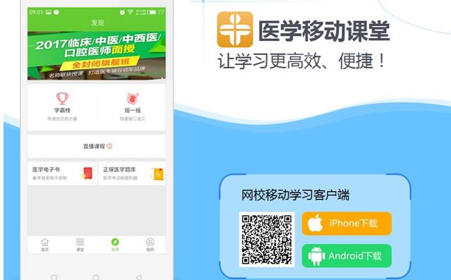 医学移动课堂:以手机为载体,突破学习环境、地点限制,随时随地学习,方便、快捷的手机应用软件。此款软件支持视频/音频模式,在线题库,在线答疑等功能。学员可以使用手机看课,或下载导入课件,呈现一种高清移动,清晰真实,教师同步板书的学习盛宴,每位学员可在计算机及手机、平板电脑上下载认证。(高清视频课件学习)点击进入下载页面>>