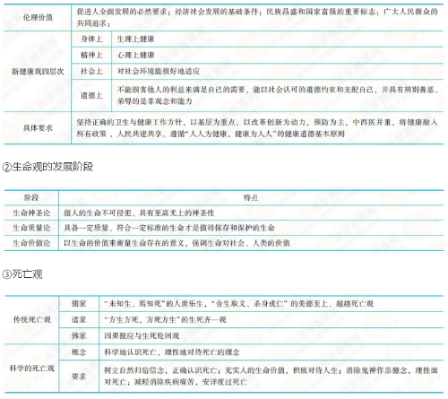 (4)医学伦理学的基本观点:健康观、生命观和死亡观。
