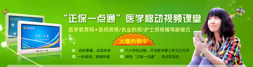 医学教育网自推出医师资格、执业药师、护士资格辅导以来,凭借卓越的培训效果、极高的考试通过率受到广大学员的一致好评,本着“学员至上”的服务理念,为满足部分没有电脑或上网不便学员的“移动学习”需求,医学教育网投入大量的人力、物力进行了技术攻关,创造性地将自有的优质网络课程资源和先进的移动视频教学技术完美结合,业内独家推出医学教育网医师资格、执业药师、护士资格考试辅导“正保一点通”移动视频课堂。