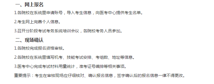 2019年医师分阶段报名暂未开通,报名时间暂未公布,一般医师分阶段考试报名时间一般是在每年3月份-5月份左右。考试报名包括网上报名和现场审核两个部分,参加实证研究的院校向国家医学考试中心报送本校《医师资格考试分阶段考试实证研究第一阶段考试实证研究第一阶段报名汇总表》。参加实证研究考试的考生应于规定时间内登陆国家医学考试网,按要求报名上传照片并检查完善个人信息并在规定时间到指定地点提交报名材料,学校进行现场报名资格审核,逾期不予补核。