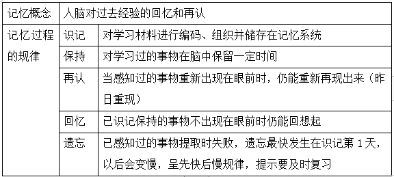 知识点:记忆的概念与过程
