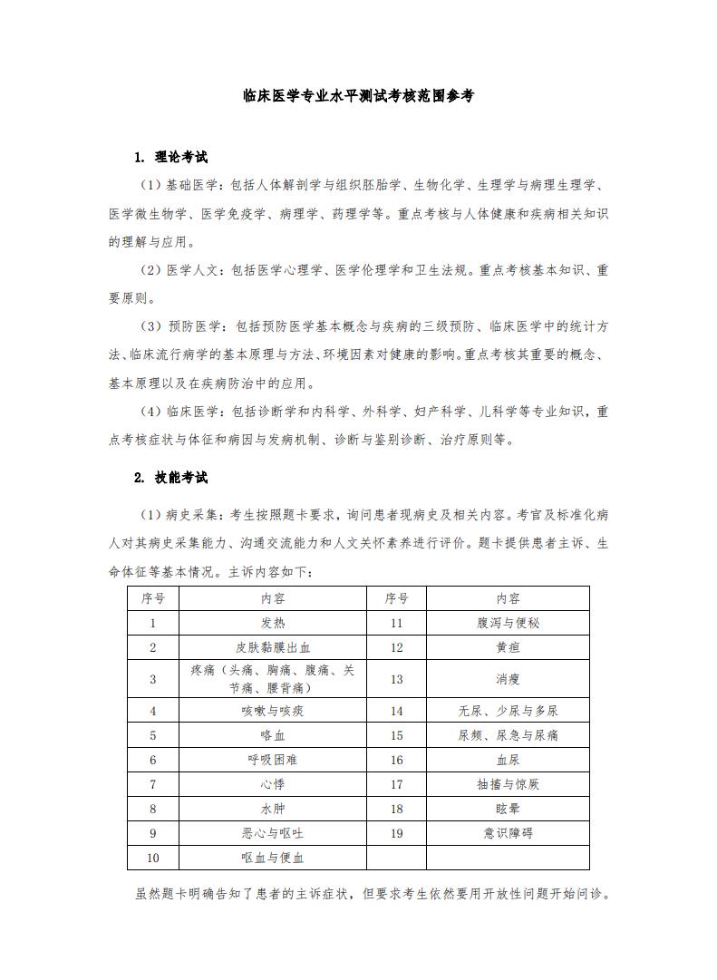 北大医学部关于临床医师专业(本科)水平测试理论考试、技能考试内容