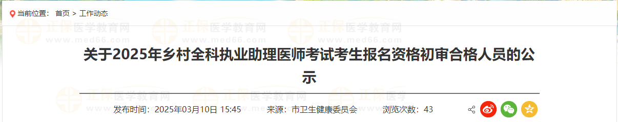 附件:鹤壁考点2025年乡村全科执业助理医师考试考生报名资格初审合格人员名单:https://wsjkw.hebi.gov.cn/gzdt/art/2025/art_4734b4466f434d2280cc135cfa99bfe6.html