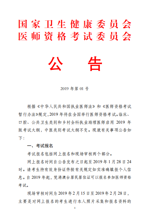 全国2019年执业∣助理医师资格考试现场审核时间|地点通知汇总