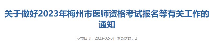 2023医师资格考试(广东梅州考点)报名及审核详细要求说明已经发布!医学教育网小编专门整理了官方通知内容如下,请相关考生仔细查看!