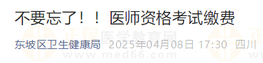 不要忘记!四川眉山东坡区2025年医师资格实践技能考试缴费已开始!请各位考生及时了解缴费要求,按时完成缴费!