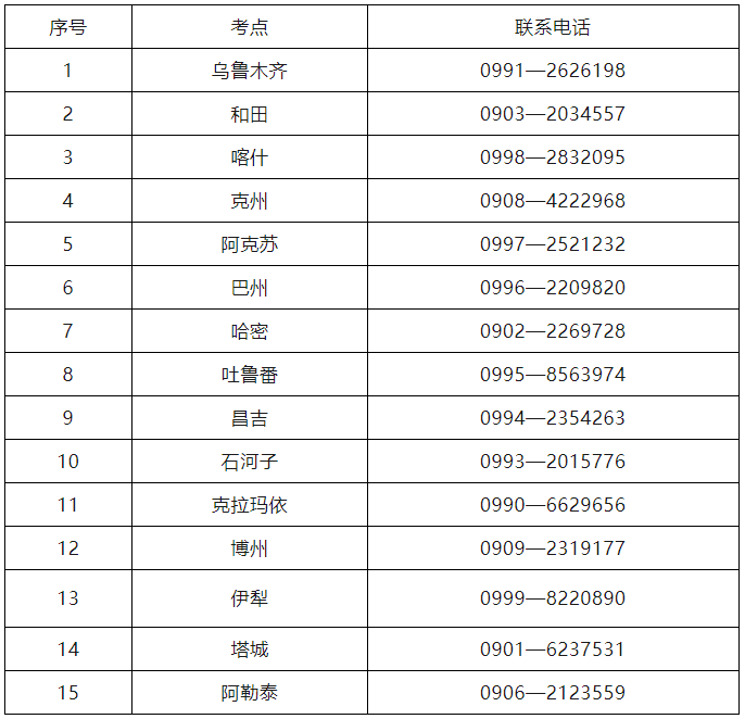 (三)新疆考区各考点联系电话