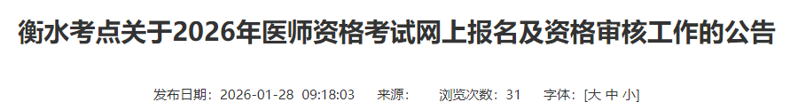 河北衡水考点官方发布2026年医师资格考试报名|审核时间安排及材料要求,请相关考生及时查看,做好报名审核准备!