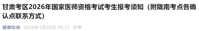 甘肃陇南考点官方发布了2026年医师资格考试报名|审核要求及联系方式,请相关考生及时查看,做好报名审核准备!