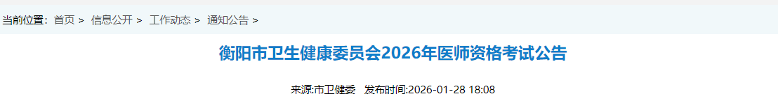 湖南衡阳考点2026年医师资格考试报名|审核时间安排及要求已公布!请相关考生及时查看,做好报名审核准备!