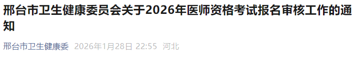 根据《河北考区关于开展2026年医师资格考试网上报名及资格审核工作的通知》(冀医考办〔2026〕1号)要求,结合我市实际,现将我市2026年医师资格考试报名审核工作有关事宜通知如下: