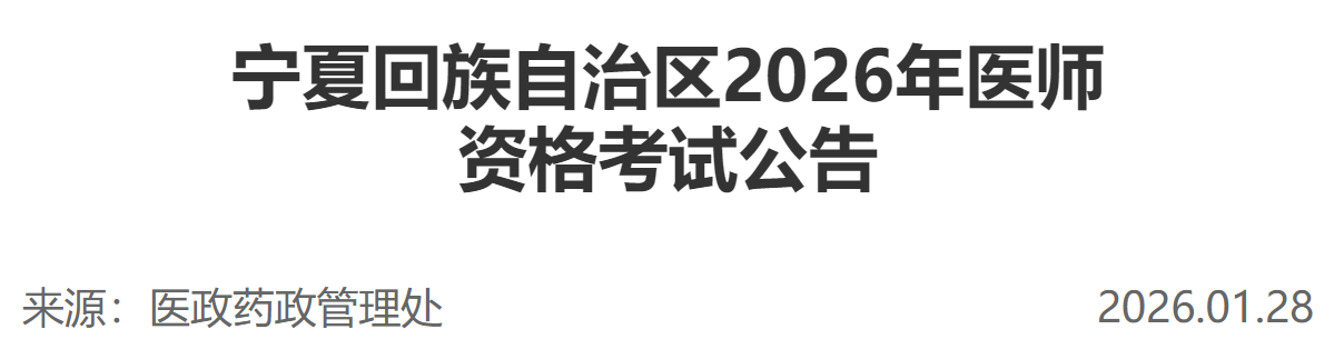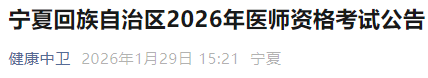根据《国家卫生健康委员会医师资格考试委员会公告》(2026年1号)有关规定,临床、口腔、公共卫生类别和乡村全科执业助理医师医学人文部分启用修订后的考试大纲。现将宁夏回族自治区2026年医师资格考试有关事项公告如下: