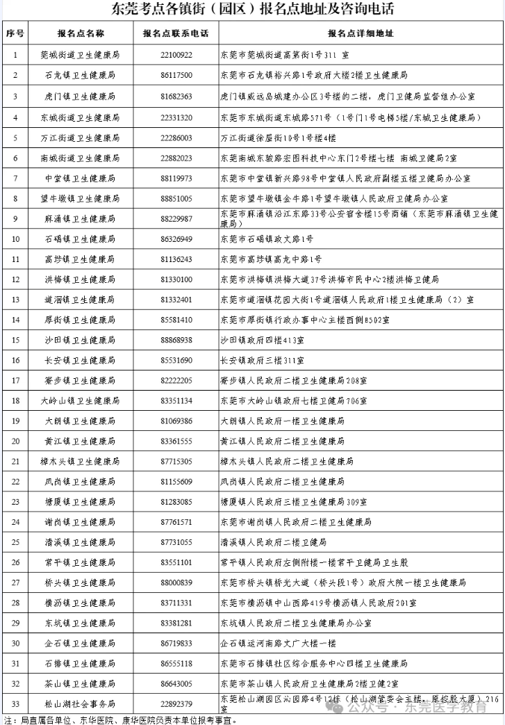 2.各镇街(园区)卫生健康局负责收齐和审核本镇街(园区)辖区医疗卫生机构(包括镇街公立医院、社区卫生服务机构和社会办医疗机构,除东华医院、康华医院外)的考生报考资料。