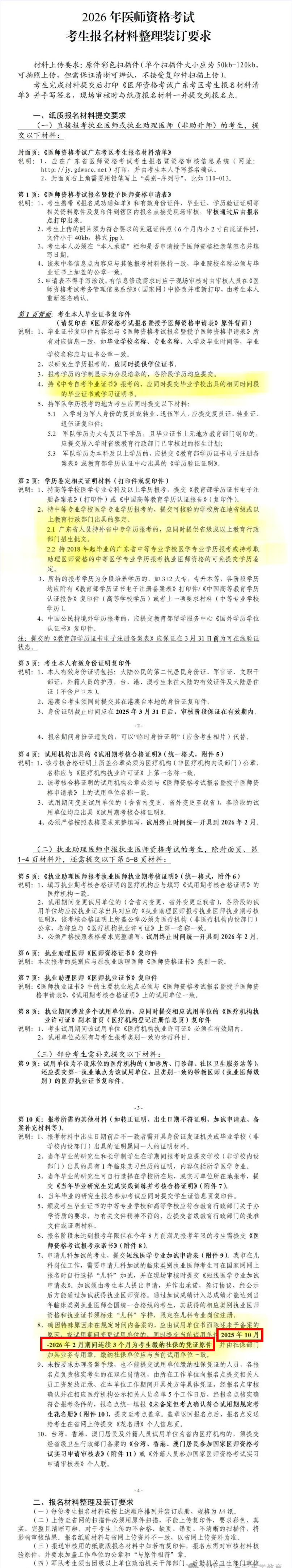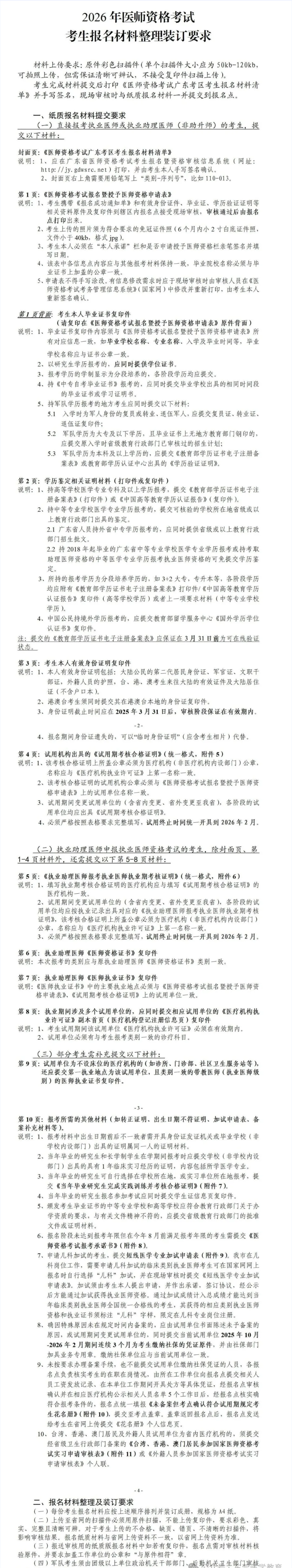 2026年医师资格考试考生报名材料整理装订要求: