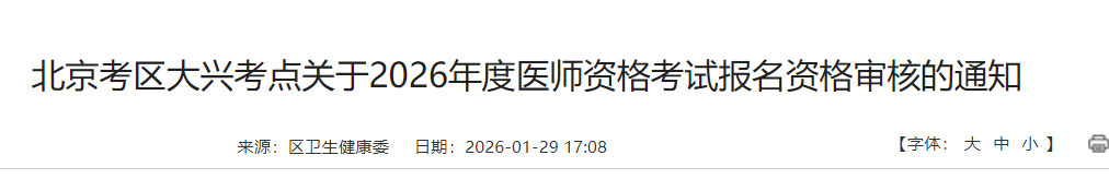 北京大兴区2026年医师资格考试报名现场审核时间|要求已出!请相关考生及时查看,做好报名审核准备!