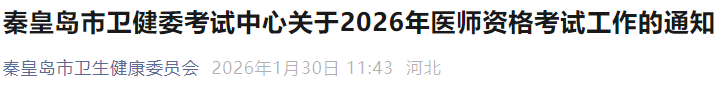河北秦皇岛2026年医师资格考试报名现场审核时间安排|材料要求已公布!请相关考生及时查看,做好报名审核准备!