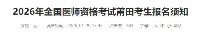 福建莆田考点2026年医师资格考试报名|现场审核安排及注意事项已公布!请相关考生及时查看,做好报名审核准备!