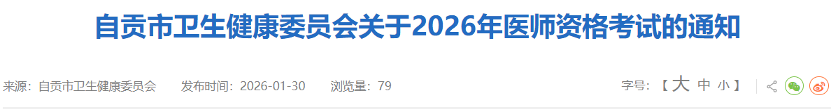 四川自贡2026年医师资格考试报名|审核|考试时间安排已公布!请相关考生及时查看,做好报名审核准备!