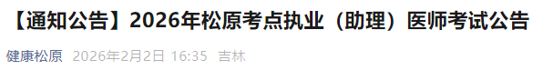 吉林松原考点2026年医师资格考试报名&审核&考试安排已公布!请相关考生及时查看,做好报名审核准备!