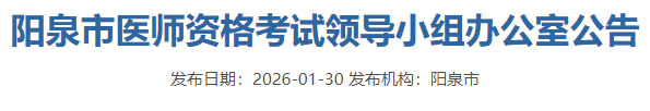 山西阳泉考点2026年医师资格考试报名&审核详细安排已公布!请相关考生及时查看,按时完成报名审核!