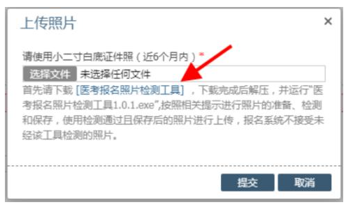 (一)考生在网报系统上传个人小二寸白底证件照时,应按照系统提示内容下载并运行“医考报名照片检测工具”,网报系统只接受经该工具检测通过且保存后的照片。
