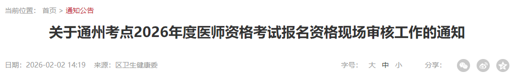 北京通州区2026年医师资格考试报名|审核时间及材料要求已公布!请相关考生及时查看,做好报名审核准备!