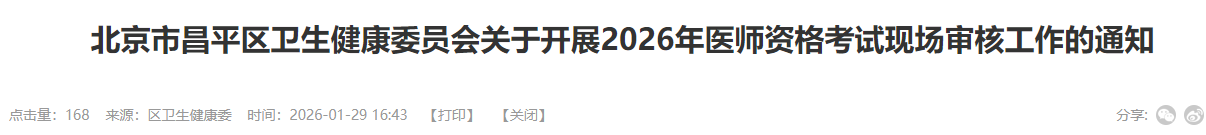北京昌平区2026年医师资格考试报名&审核安排及注意事项已公布!请相关考生及时查看,做好报名审核准备!