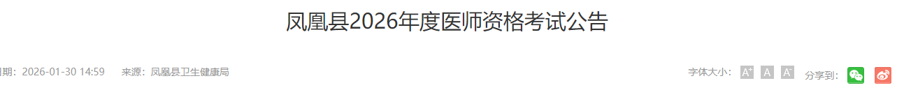 根据《国家卫生健康委员会医师资格考试委员会公告》(2026年第1号)、《湖南省卫生健康委员会公告》和《湘西考点2026年度医师资格考试公告》的规定,现就凤凰县2026年度医师资格考试工作有关事项公告如下: