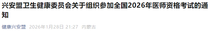 内蒙古兴安盟2026年医师资格考试报名|审核|缴费|考试安排已公布!请相关考生及时查看,按时完成报名审核准备!