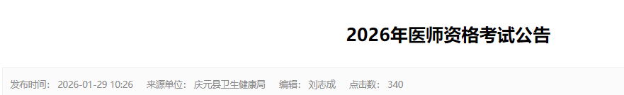 浙江丽水庆元县2026年医师资格考试报名|审核|考试安排已公布!请相关考生及时查看,按时完成报名审核!