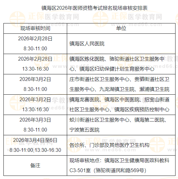 浙江宁波镇海区2026年医师资格考试报名|现场审核安排已公布!请相关考生及时查看,做好报名审核准备!