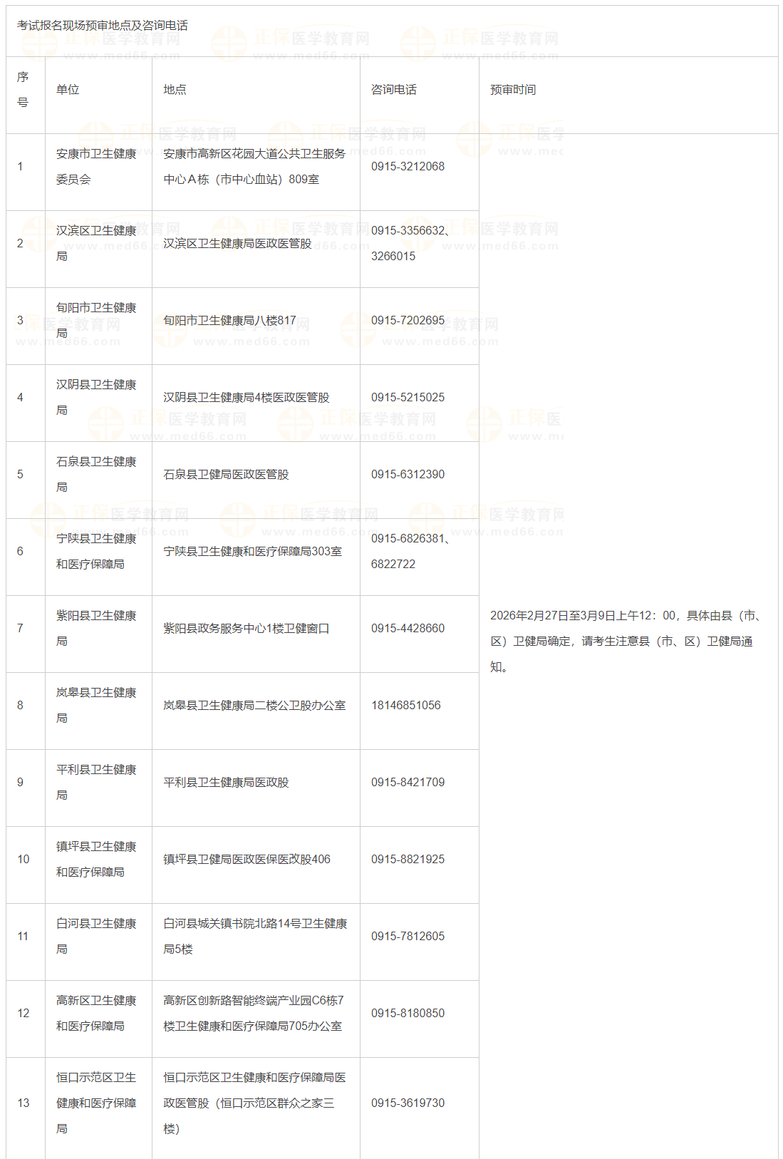 陕西安康考点2026年医师资格考试报名&审核&考试时间安排已公布!请相关考生及时查看,做好报名审核准备!