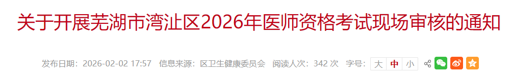 根据芜湖市考点统一安排,现将我区2026年医师资格考试现场审核工作具体事项通知如下: