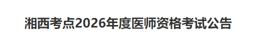 根据《国家卫生健康委员会医师资格考试委员会公告》(2026年第1号)和《湖南省卫生健康委员会公告》的规定,现就湘西考点2026年度医师资格考试工作有关事项公告如下: