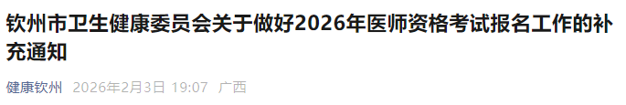 广西钦州2026年医师资格考试报名&现场审核安排及注意事项已公布!请相关考生及时查看,做好报名审核准备!