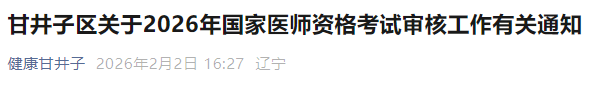 - · 辽宁大连甘井子区2026年医师资格考试报名&现场审核时间安排