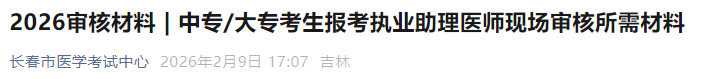 吉林长春考点官方发布2026年医师资格考试中专/大专报考助理医师审核所需材料!请相关考生及时查看,做好报名审核准备!