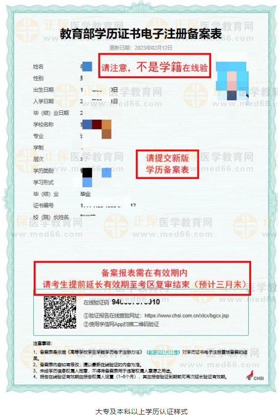 ●“学信网”打印的《教育部学历证书电子注册备案表》需最新版(必须在有效期内,因材料需要等待省审,考生需延长有效期至少3个月);