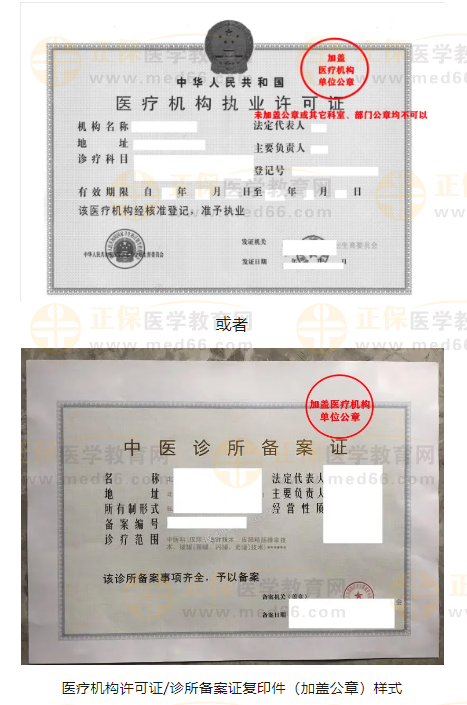 实践单位医疗机构许可证正本(或副本)/诊所备案证的复印件1份,并加盖医疗机构单位公章;
